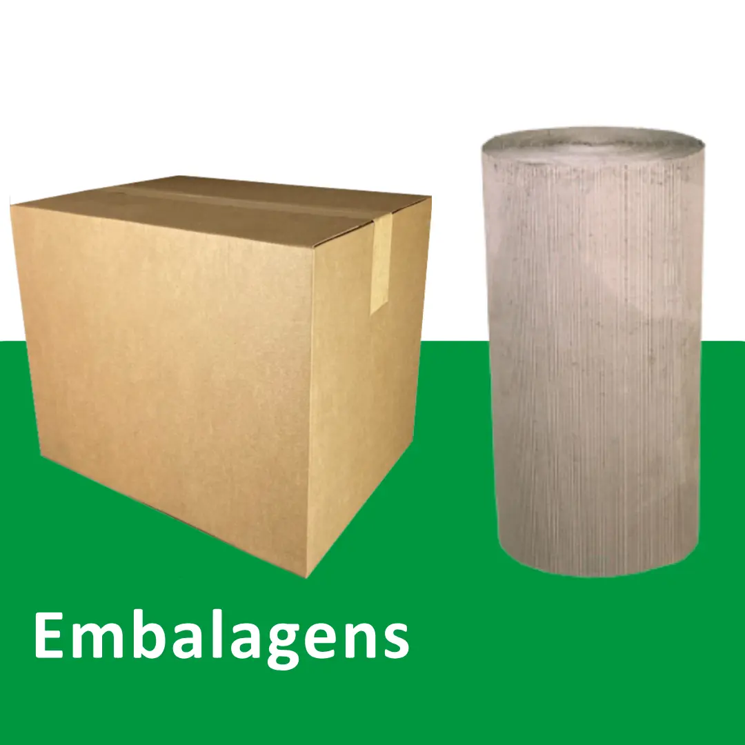 Caixas, papelão ondulado, filme strech, plastico bolha e outros.